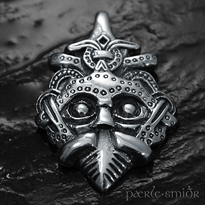 Original-Reproduktion eines berühmten Fundstücks der Wikingerzeit aus dem Gnezdovo-Schatz (10. Jh. n. Chr.). Der Anhänger stellt das Gesicht eines bärtigen Wikingers dar. Sehr massiv und in Originalgröße gearbeitet.
